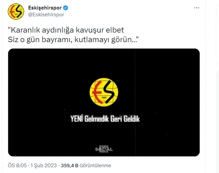 Yapılan paylaşımda, Eskişehirspor’un ve taraftarların çektiği sıkıntılar anlatılırken, son kısımda ise “Yeni gelmedik, geri geldik” sloganıyla taraftarlara müjde verildi.