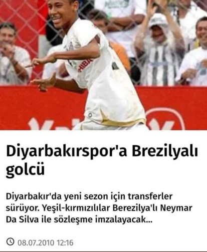 Her yaz dönemi dünya yıldızlarını ülkemize transfer eden Türk spor basınının Brezilyalı yıldız Neymar'ı Diyarbakırspor'a getirdiği ortaya çıktı.