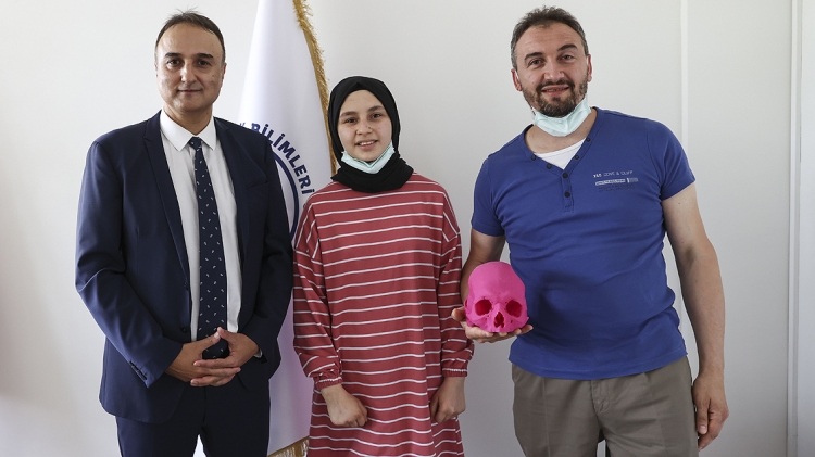 Trafik kazası sonrasında kafatasının bir bölümünü kaybeden Gizemnur Yılmaz, Sağlık Bilimleri Üniversitesi Gülhane Eğitim ve Araştırma Hastanesi'nde gerçekleştirilen titanyumdan üretilen yapay kafatası parçalarının nakli ile yeniden yaşama döndü.