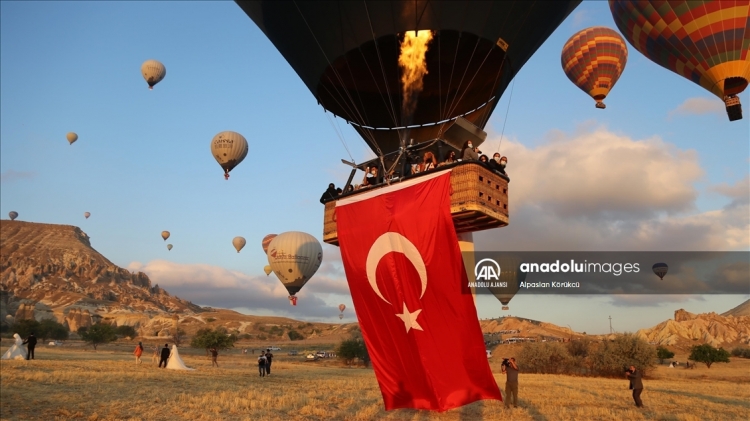 AK Parti Nevşehir İl Başkanlığınca hazırlanan "Unutmadık unutturmayacağız" ve "Türkiye geçilmez" yazılı pankartlar ve Türk bayrakları sıcak hava balonlarının sepetlerine asıldı.