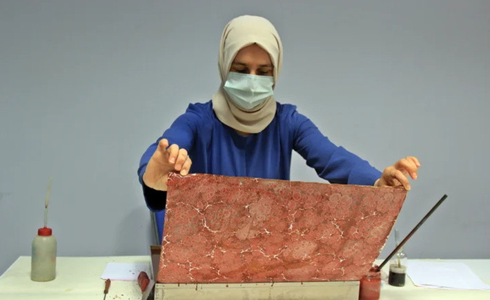 Dünyanın en zor tekniği: Kocaeli Büyükşehir Belediyesi Geleneksel Türk Süsleme Sanatları bölümündeki usta ebru ve hat öğreticilerinin de aralarında bulunduğu 12 kişilik ekip, dünyanın en zor tekniği olarak bilinen, ebru teknesinde hazırlanan ‘akkase yöntem’ ile cami duvarlarını bezedi.