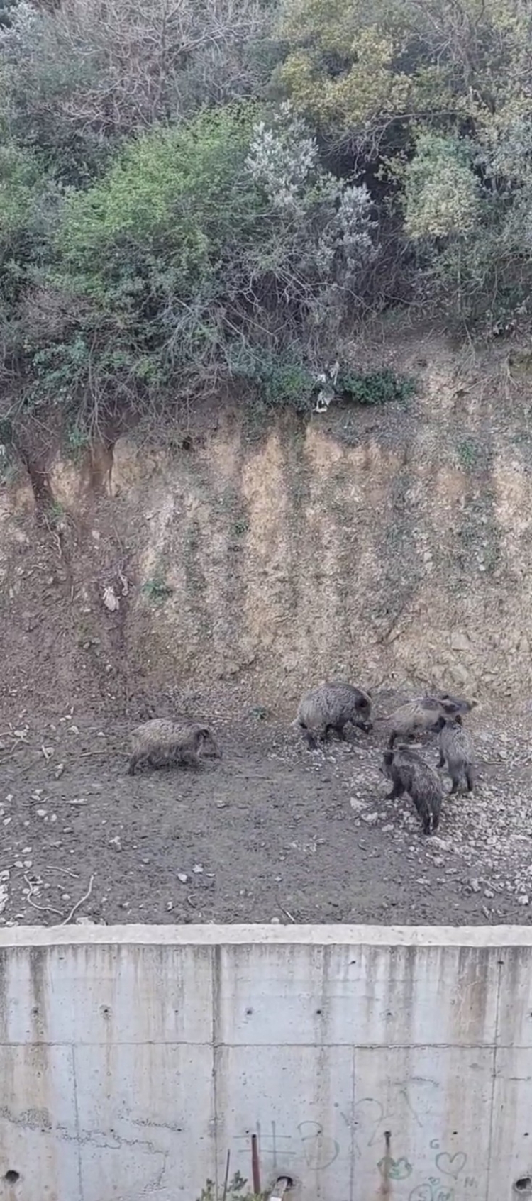 İstanbul'da ormanlık alanda aç kalan domuzlar, Sarıyer'de Ayazağa Mahallesi'ne indi. Domuzlar, bir süre etrafta dolaşarak yiyecek aradı. Boş alandaki domuzlar vatandaşlar tarafından cep telefonu ile görüntülendi.