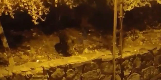İstanbul Sarıyer’de ormanlık alanda yiyecek bulamayınca şehir merkezine kadar inen domuz sürüsü cep telefonu ile görüntülendi.