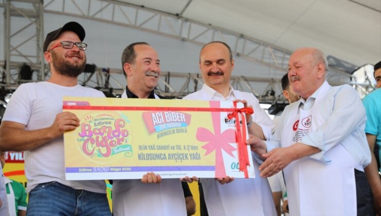 Karaağaç’ta yetişen ve tava ciğerin olmazsa olmazı Karaağaç Acı Biberi’ni 92 adet yiyerek yarışmayı kazanan 84 kilogramağırlığındaki Emrah Mucurtay, 84 kilo ayçiçeği yağı verildi. Şanlıurfalı olduğunu söyleyen yarışmacı Mucurtay, daha fazla acı olsa daha fazla yiyebileceğini belirtti.