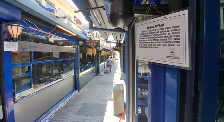 Geçmiş dönem belediye başkanı tarafından cam bölmeler ve tentelerle birbirinden ayrılarak düzenlenen işletmelerin, mevcut belediye yönetimi tarafından ‘yer işgali’ kapsamında değerlendirilmesi üzerine, cam bölme ve tentelerle ilgili yıkım kararı çıktı. Belediye ekipleri, sokakta yapılan denetimlerin ardından söz konusu 11 işletme için mühürleme işlemi uyguladı